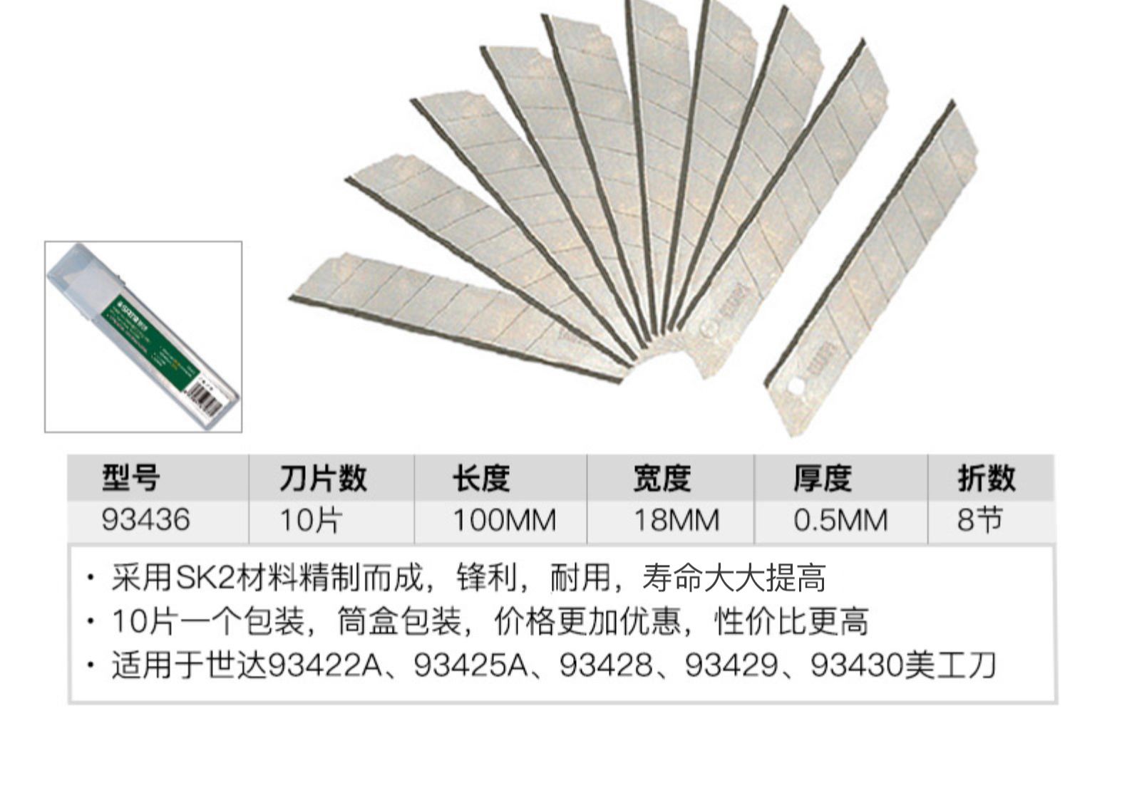 • 伊莱科大号美工刀片 100*18*0.5MM ET060001 (10片/盒)