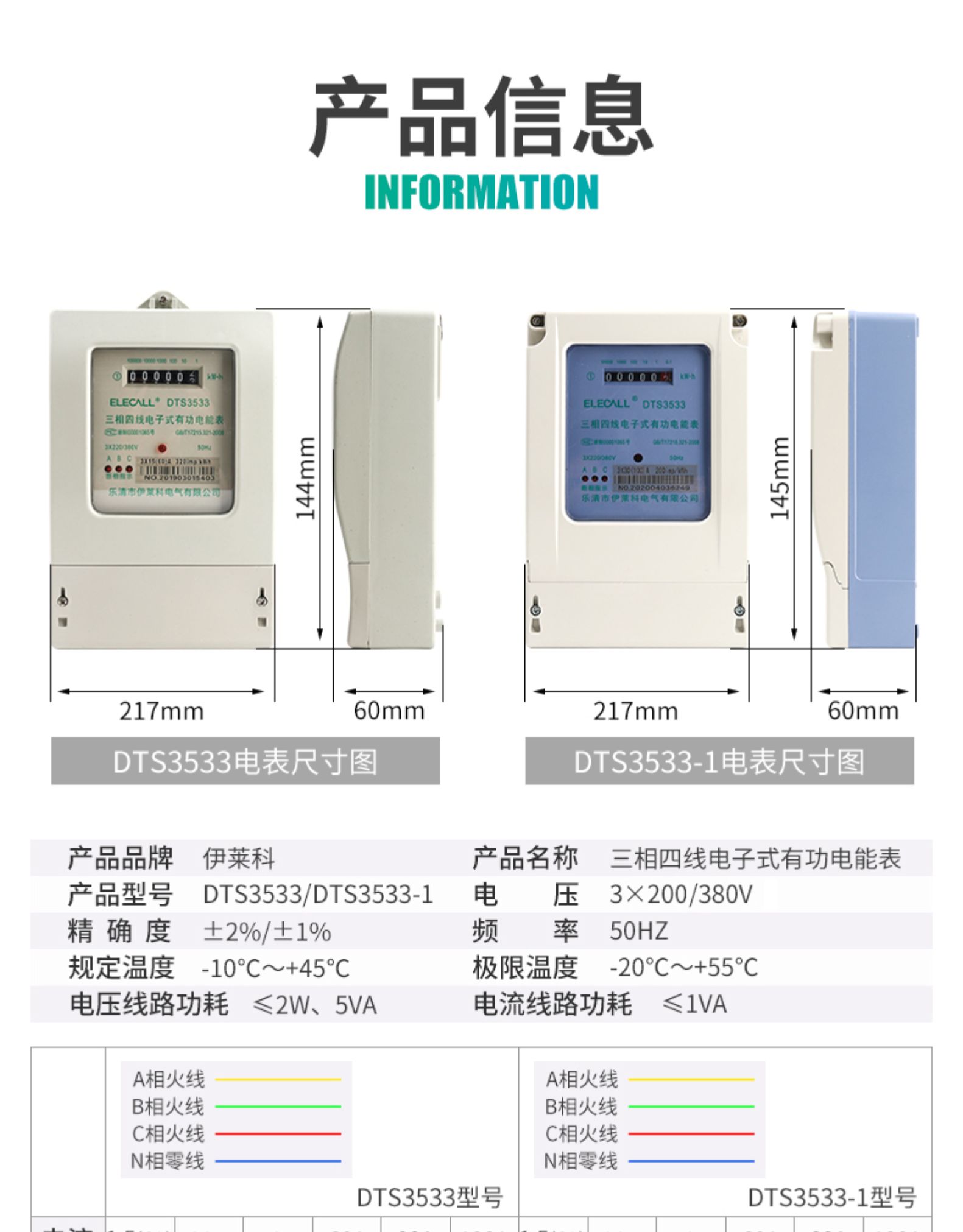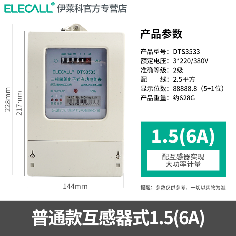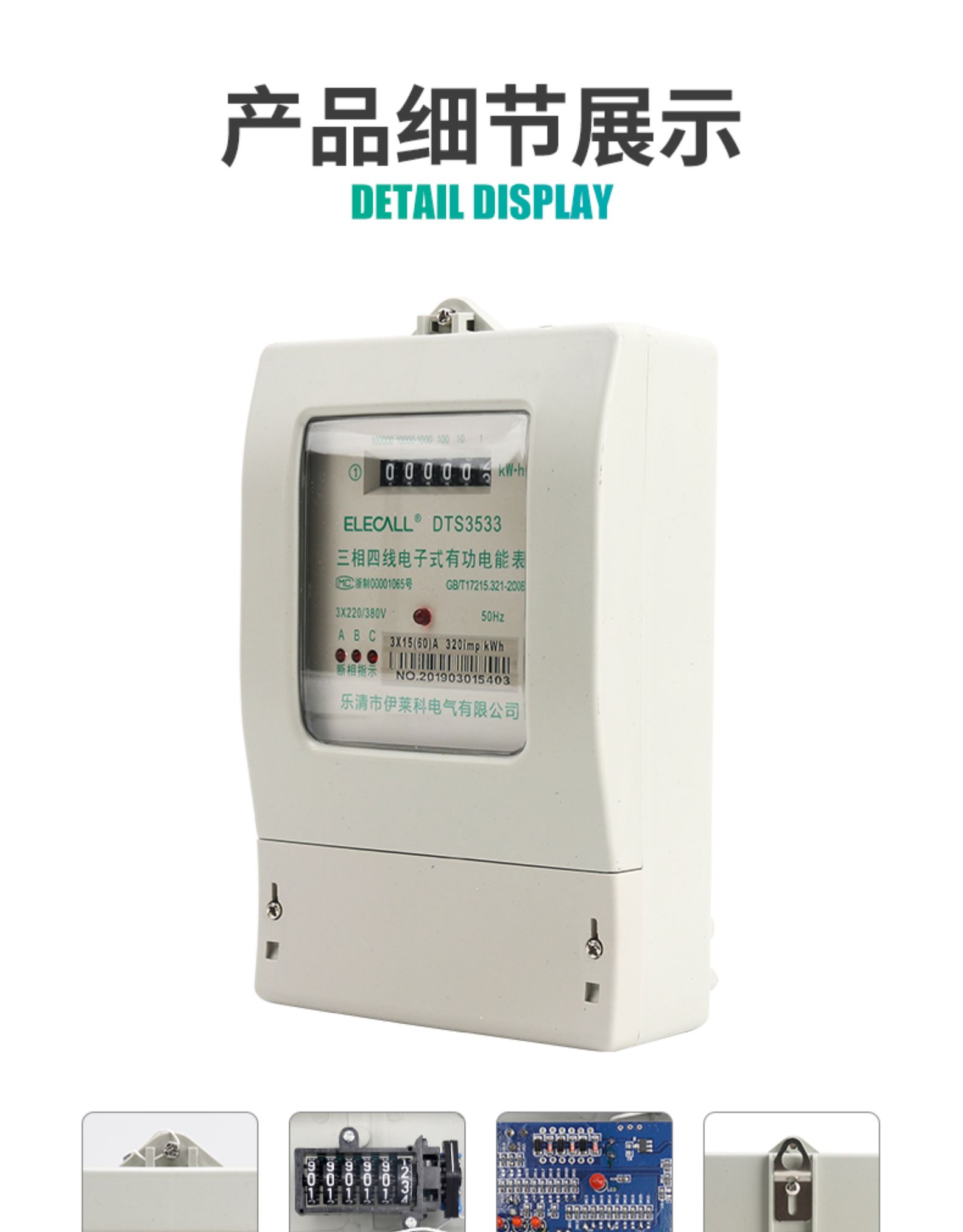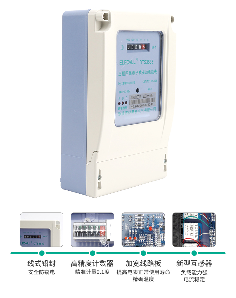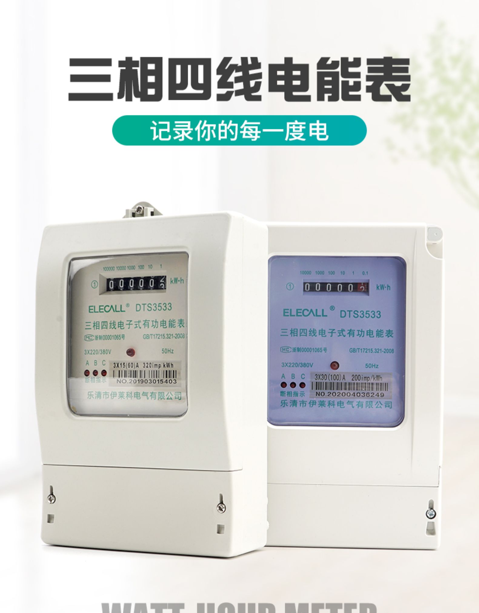 伊莱科三相四线电表380V出租房电能表家用电子有功电度表DTS3533
