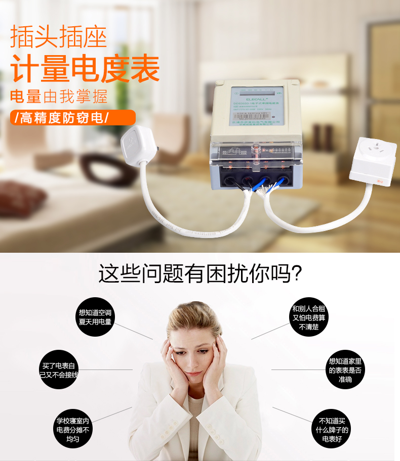 • 出租房数字电表电子式电表 插座式带线电表 空调专用配插头电度