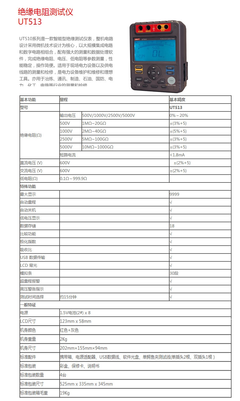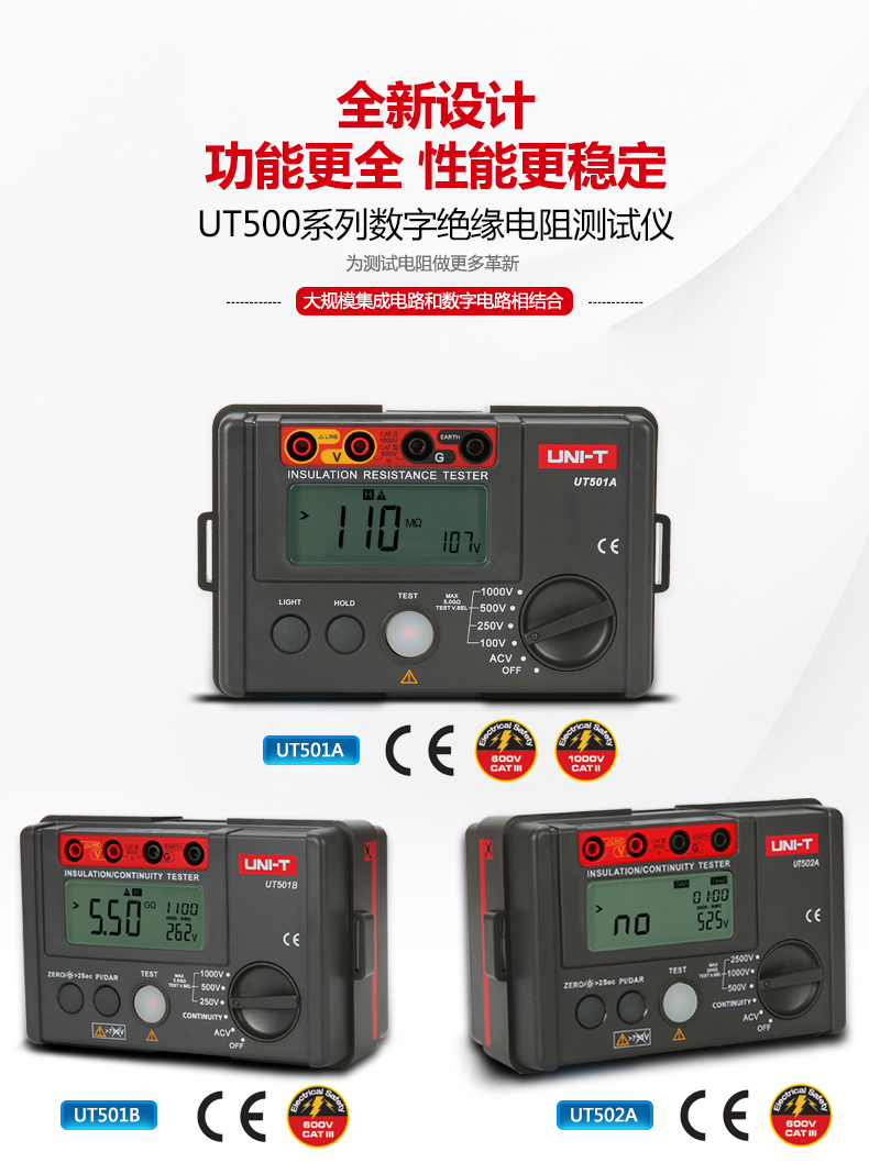 优利德数字绝缘电阻测试仪UT500系列数显兆欧表绝缘摇表UT502A