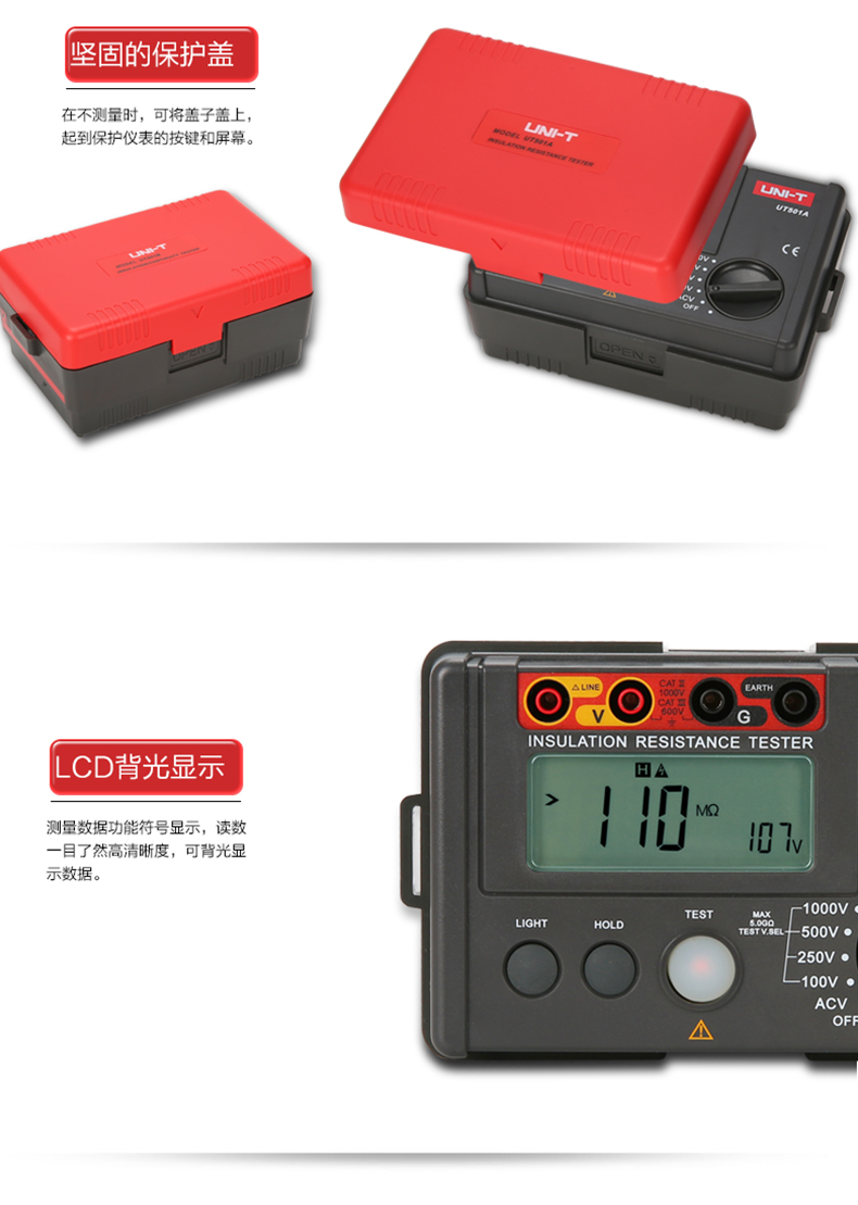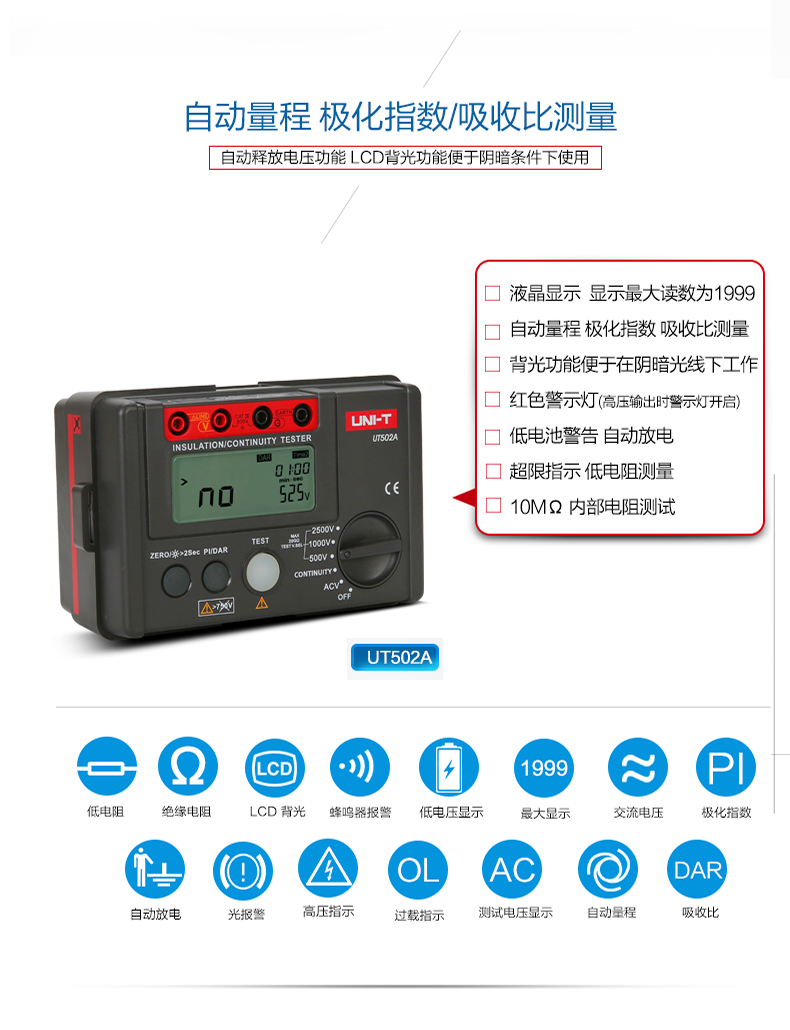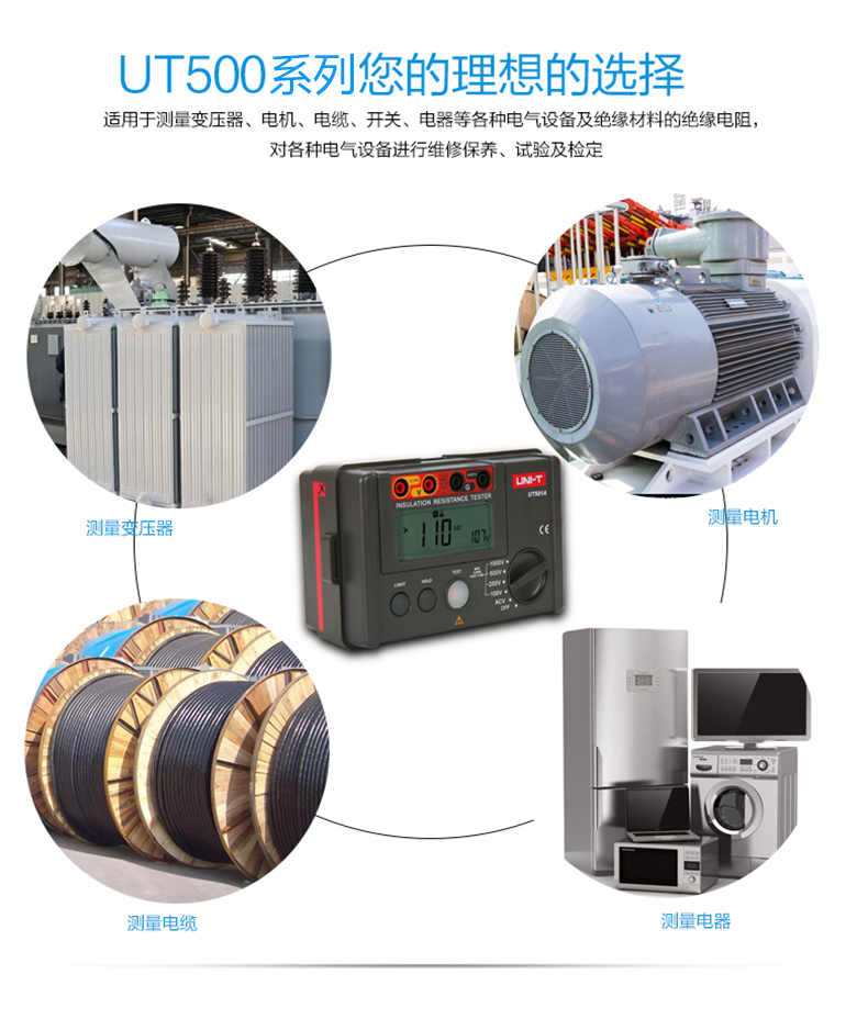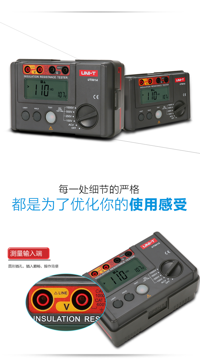 • 优利德数字绝缘电阻测试仪UT500系列数显兆欧表绝缘摇表UT502A