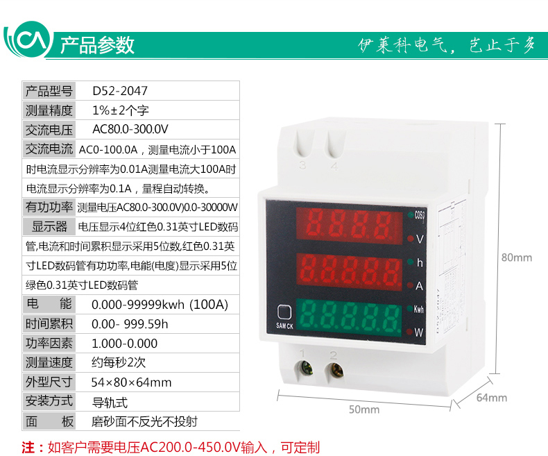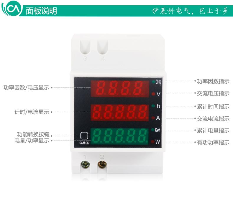 • 伊莱科D37-2042双显示交流电流电压数显精准稳定多功能表显示表