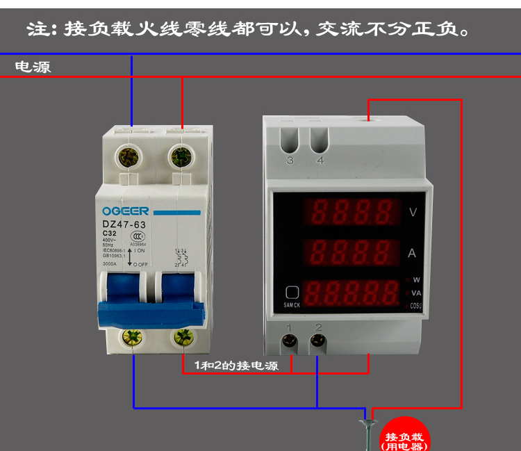 • 双显导轨D52-2048/2047数字电压表 数显交流电流表功率因数