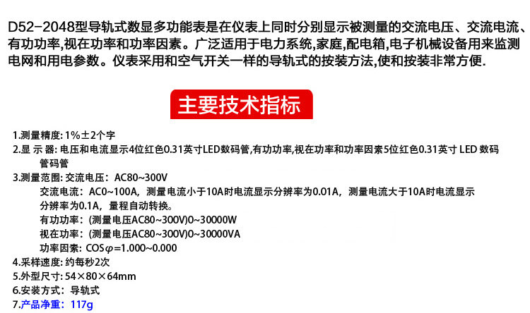 双显导轨D52-2048/2047数字电压表 数显交流电流表功率因数