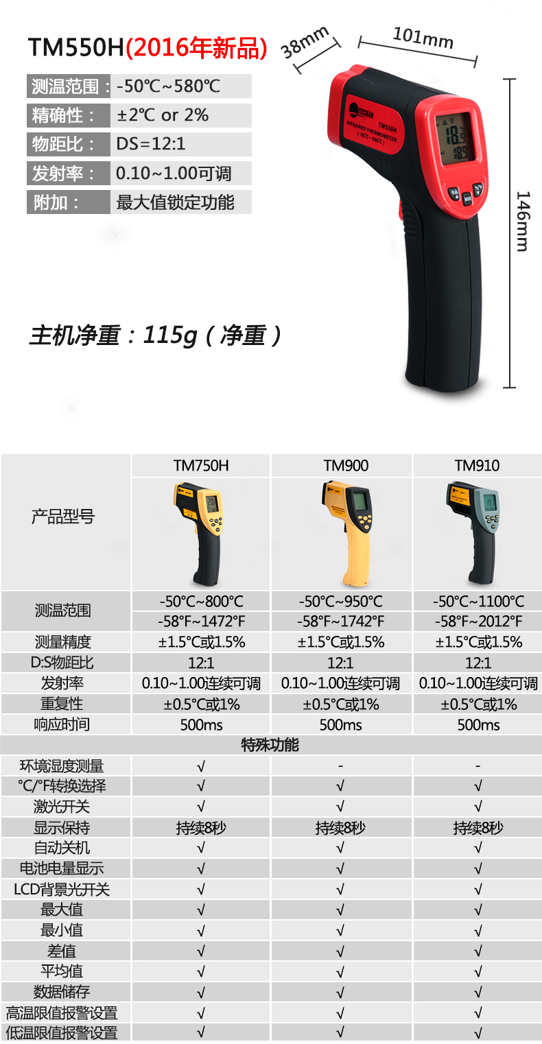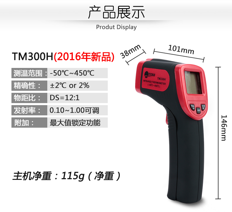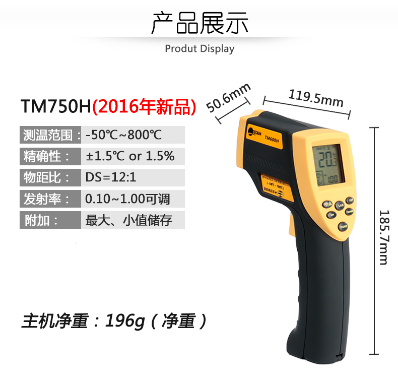 泰克曼 红外测温仪工业测温枪 高温红外线测温仪高精度手持温度计