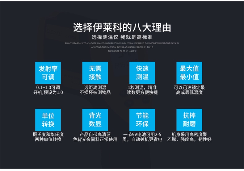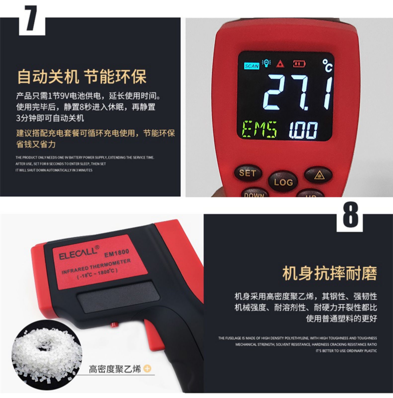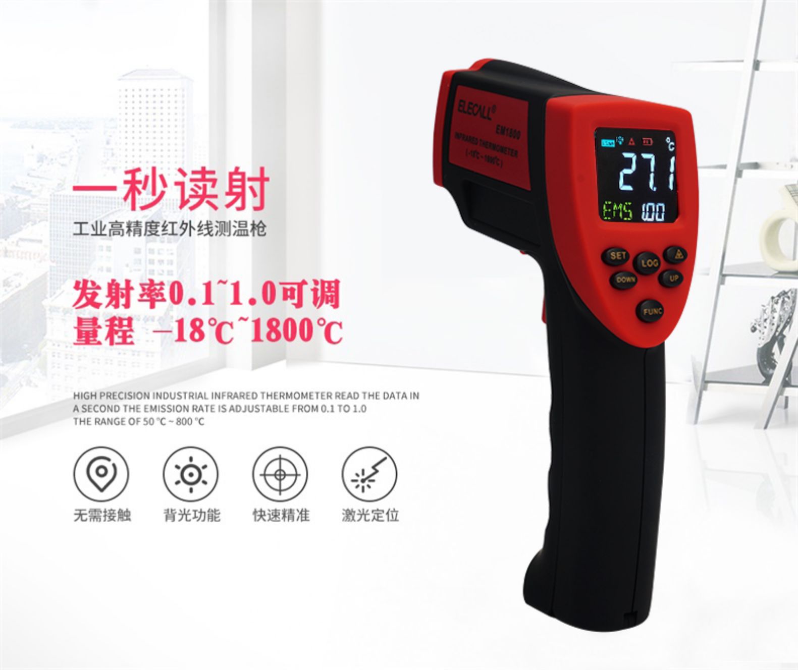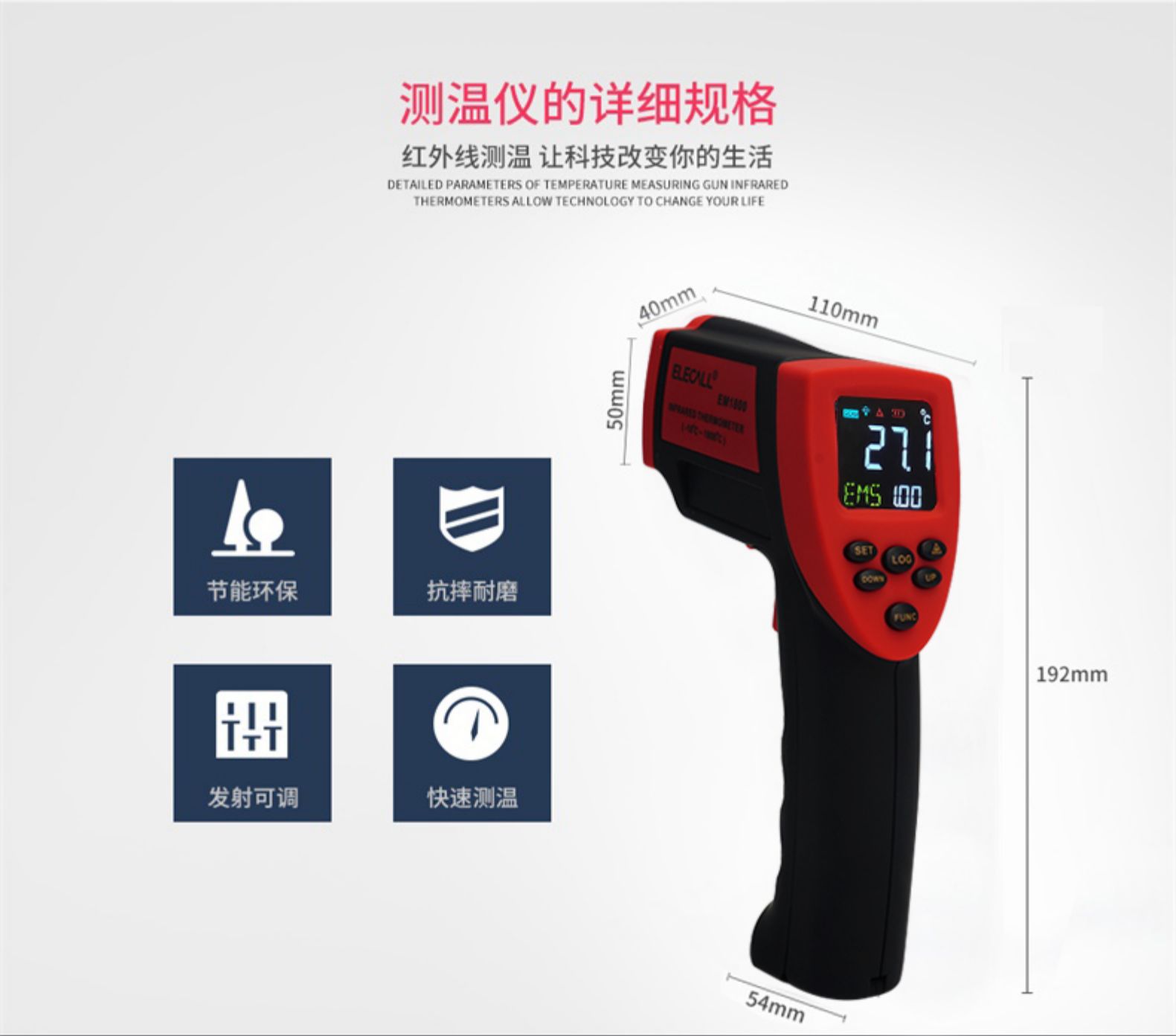 伊莱科红外线测温仪高精度手持高温测温枪冶金窑炉锻造温度计