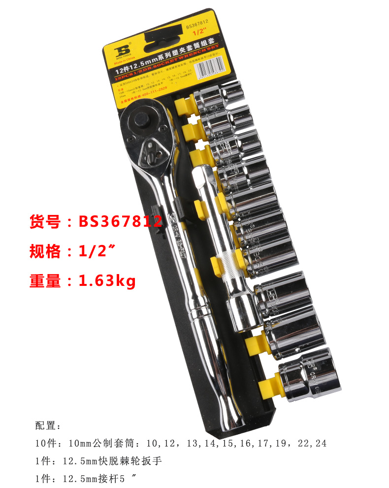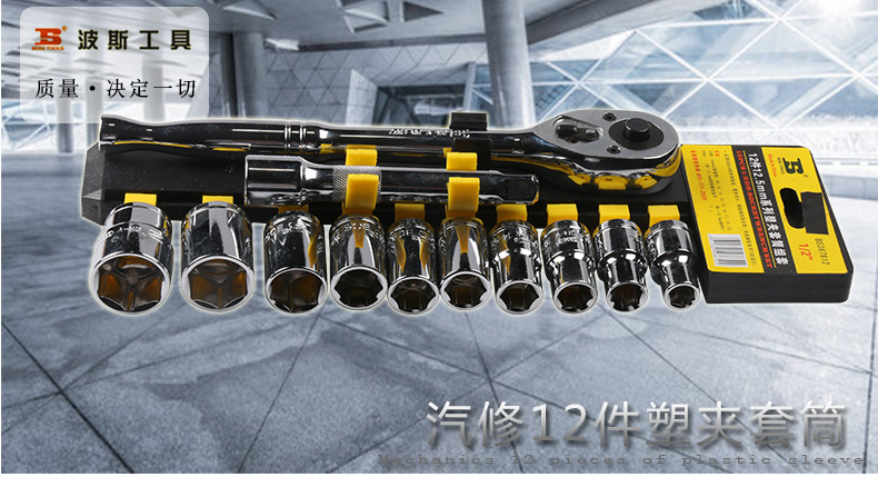 波斯工具 汽修12件12.5MM六角公制系列塑夹套筒组套12 BS367812