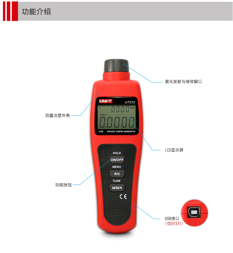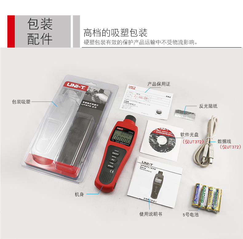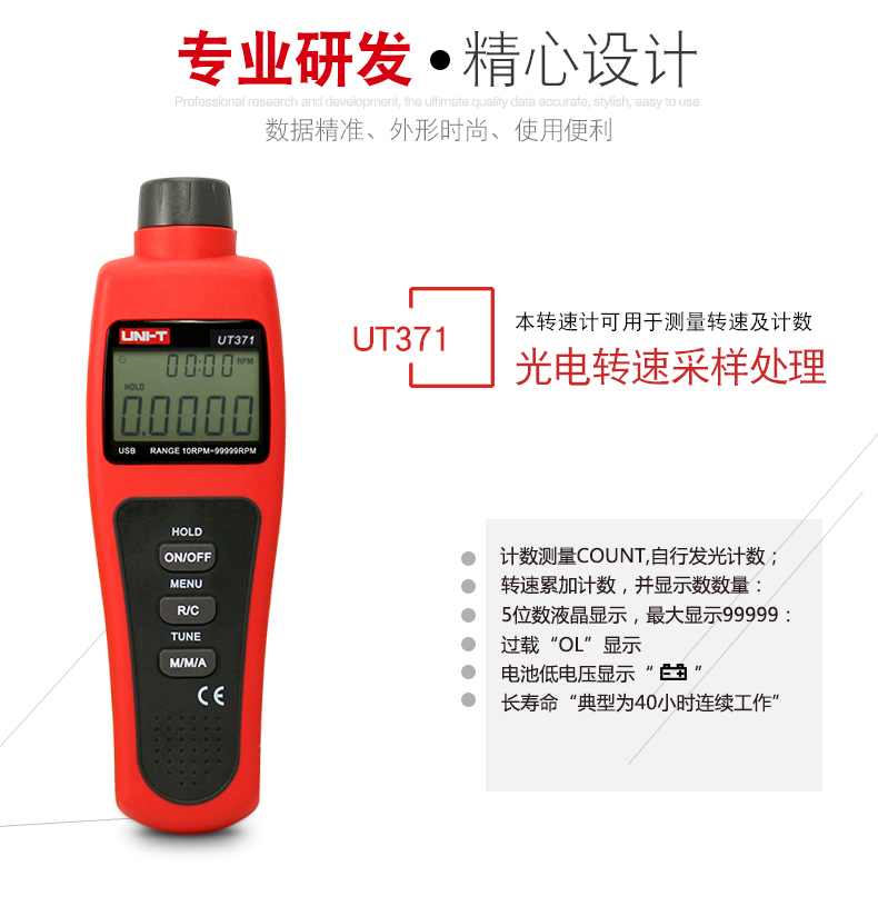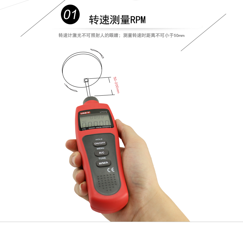 • 优利德UT371UT372非接触式转速测速仪转速表数显转速计光电转速仪
