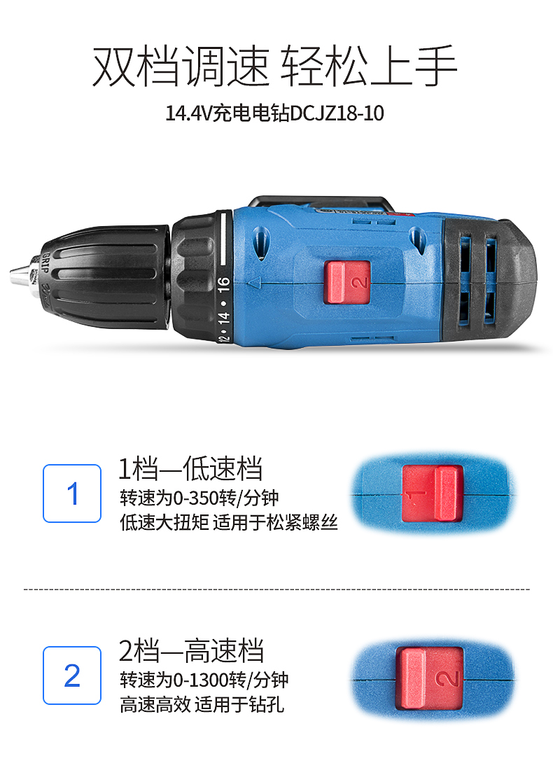 东成充电式手电钻DCJZ18-10(E型) 14.4V