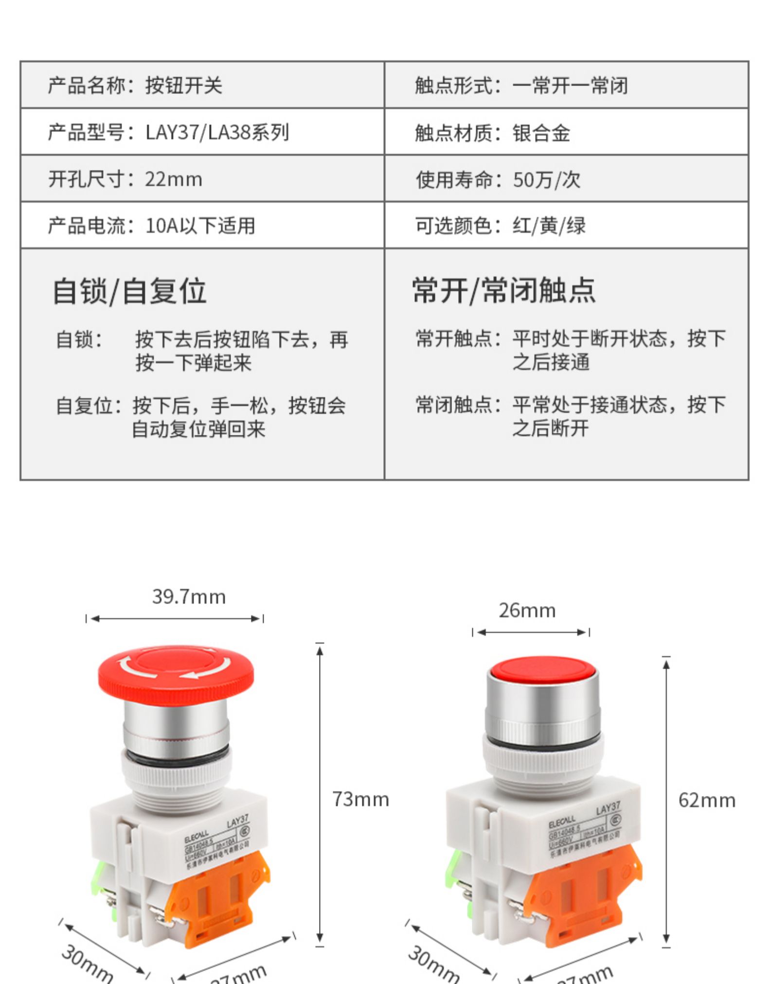 • 急停按钮 (不带锁)LAY37-11M(Y090)